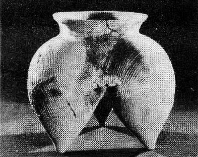 除鬲以外, 贾家营出土的陶器中,罐、 瓮、 盆、 钵占有相当的比例。 除了鬲和少量的罐陶土是含砂的, 其它的陶器如罐、 盆和瓮都是泥制的。 所谓泥制是指陶土里不但没有砂, 而且制陶的泥还是经过淘洗选择的、 最细腻的泥, 这样处理是为了让陶器密度增大, 器物不容易渗透。 器物中体型最大的, 瓮口径达30多公分, 体高约50公分, 外形就像我们今天使用现代的缸, 但底部也有三个足, 这是为了隔离地面、 起防潮作用而安装的。 “大体量瓮的存在还说明当时的农业可能很发达, 食物已有结余。” 陶宗冶说。