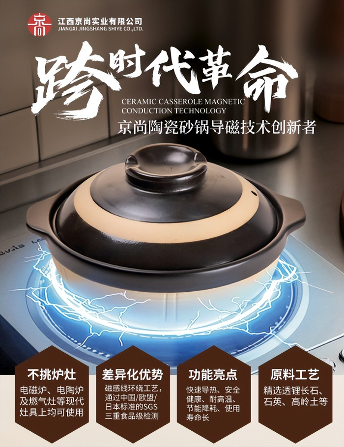 这一困扰行业多年的技术瓶颈,如今被彻底打破!京尚导磁锅,用独创技术+严苛原料双重保障,让陶瓷锅从此告别“挑炉具”的尴尬。